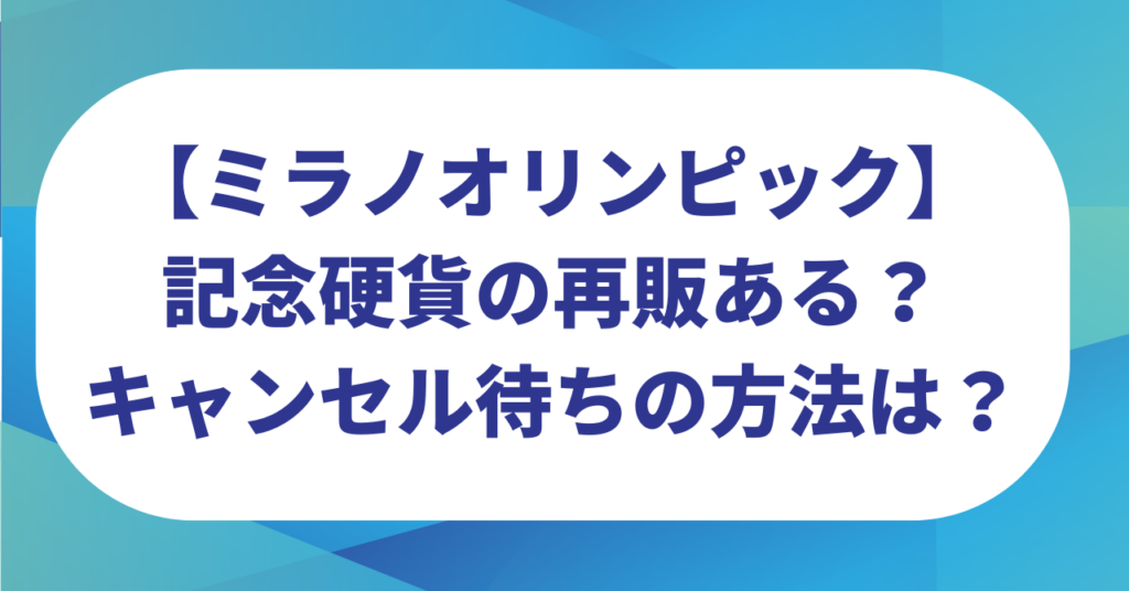 【ミラノオリンピック】記念硬貨の再販ある?キャンセル待ちの方法は?